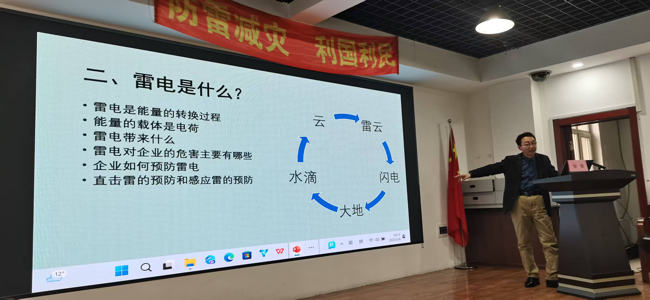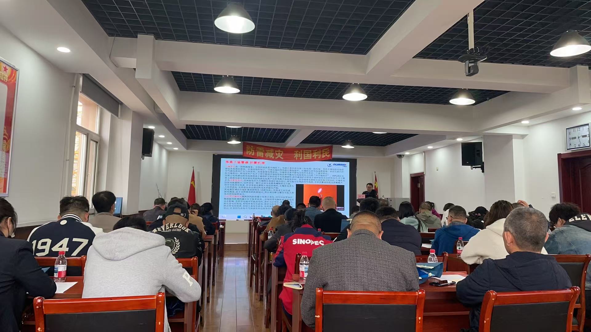 黑龙江恒电防雷工程有限公司走进南岗区跃进办事处展开科普教育讲座,董事长徐健上台开讲